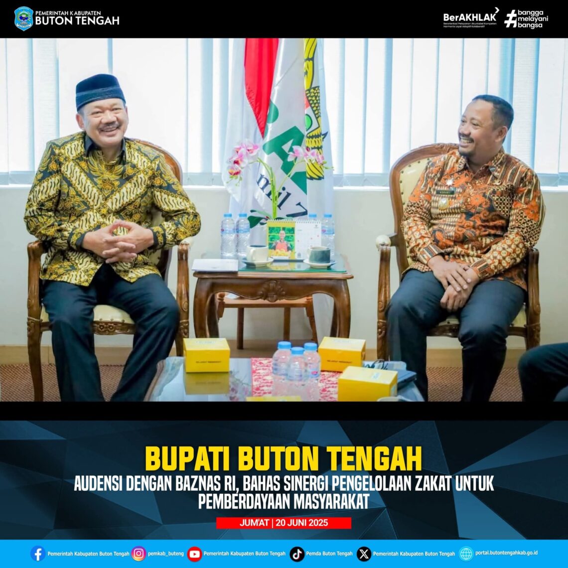 Jurnalmasyarakat.com, Jakarta- Bupati Buton Tengah, Dr. H. Azhari, S.STP., M.Si, melakukan audiensi dengan Ketua Badan Amil Zakat Nasional (Baznas) Republik Indonesia Prof. Dr. KH. Noor Achmad, MA di Jakarta, Jumat (20/6/2025).