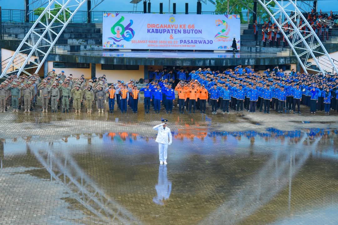 Jurnalmasyarakat.com, Pasarwajo- Upacara peringatan Hari Ulang Tahun (HUT) Kabupaten Buton yang ke-66 sekaligus merayakan 22 tahun Pasarwajo sebagai ibu kota kabupaten berlangsung khidmat di alun-alun Takawa, Jumat pagi (04/7/2025). Di usia Buton 66 tahun ini, menjadi momentum penting sebagai semangat baru untuk berbenah dan bergerak bersama.