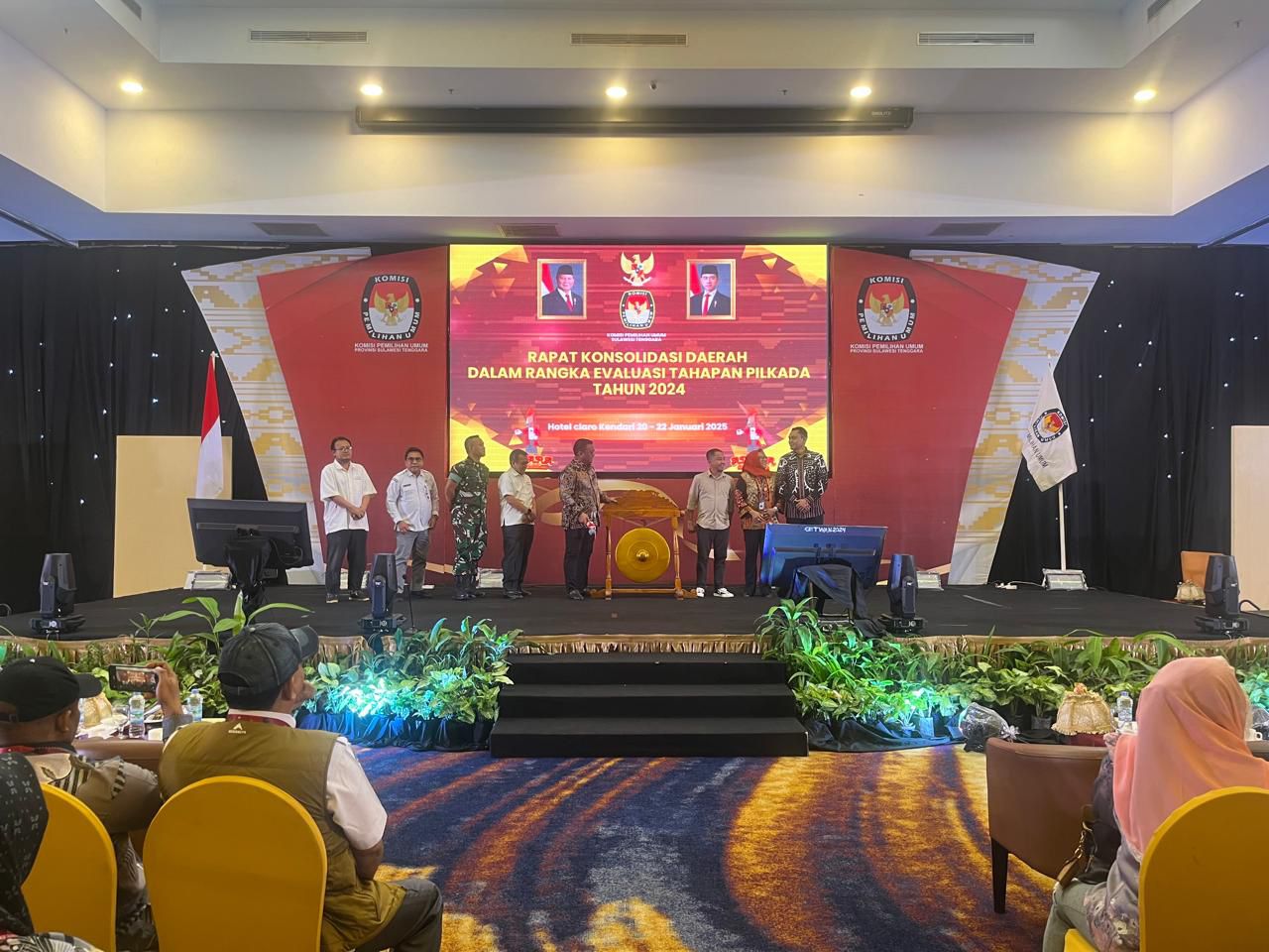 Pembukaan Rapat Evaluasi Pelaksanaan Pemilihan Kepala Daerah (Pilkada) 2024 yang dilaksanakan KPU Sultra di Hotel Claro, Kendari.